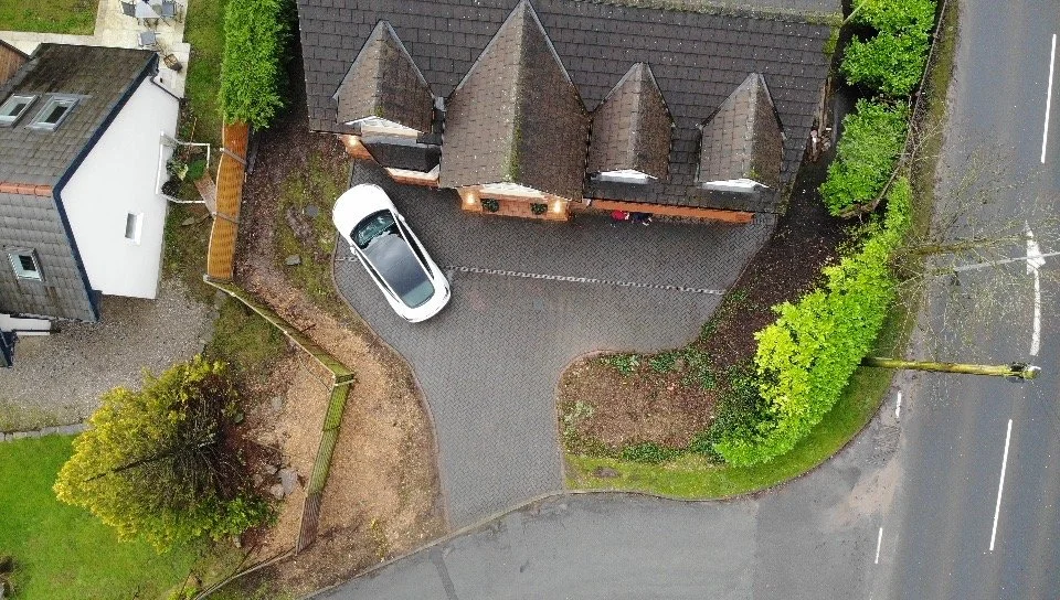 Scope: Excavate existing ground and install new subbase, porous asphalt surface and new block paved perimeter, finished with resin bound gravel.